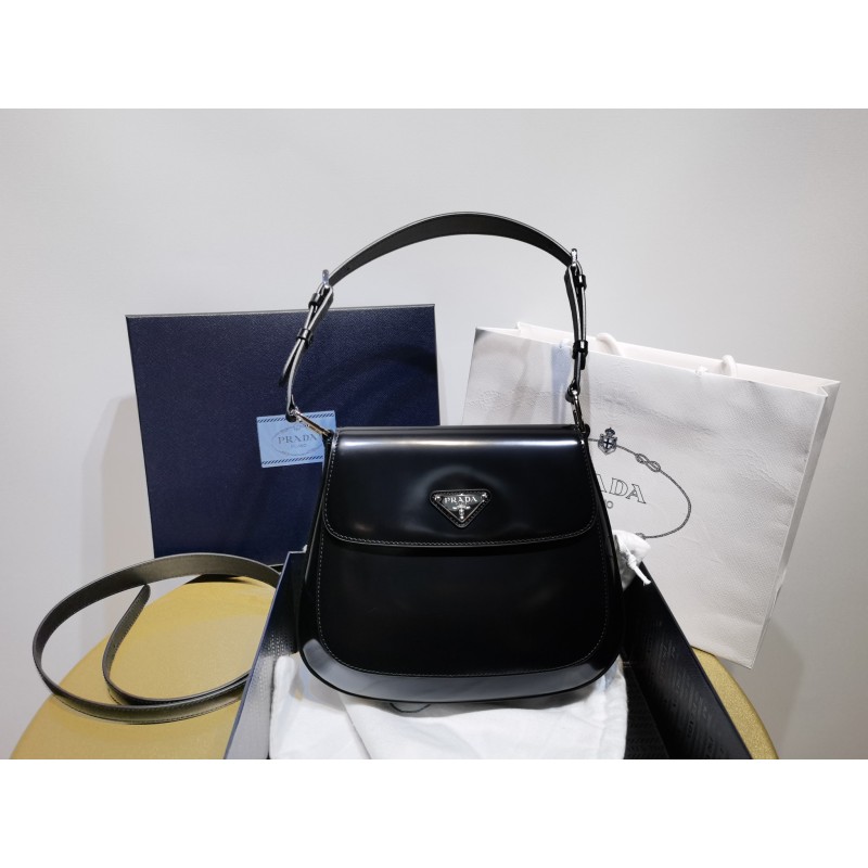 프라다 클레오 브러시드 가죽 플랩 숄더백 1BC303